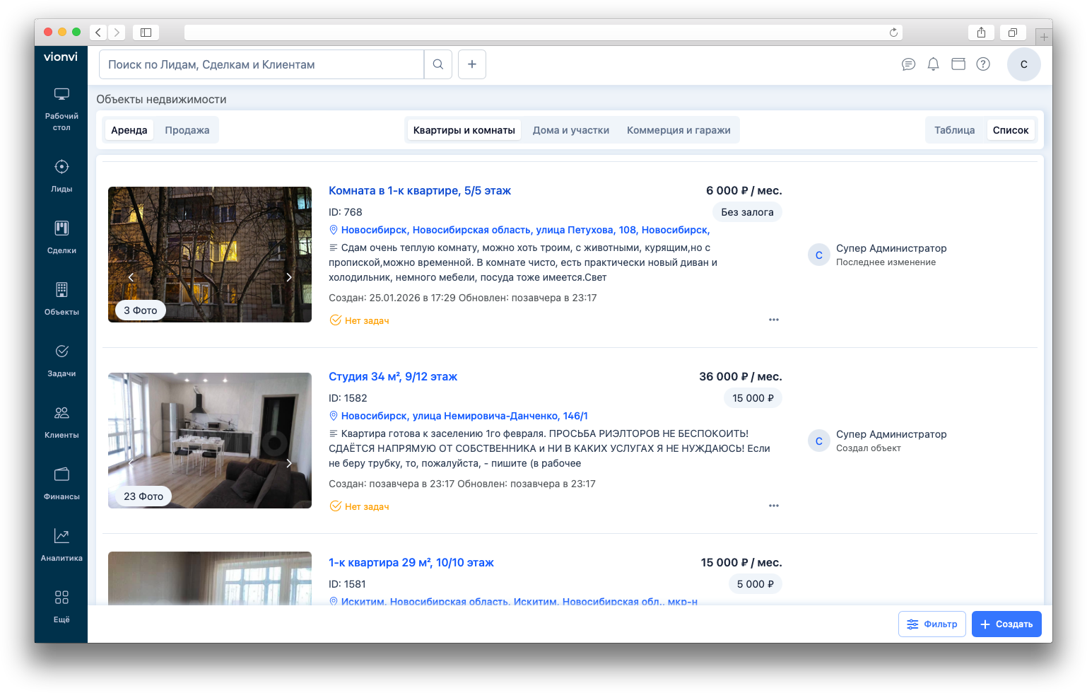 Объявления собственников автоматически фильтруются по ряду определенных параметров.