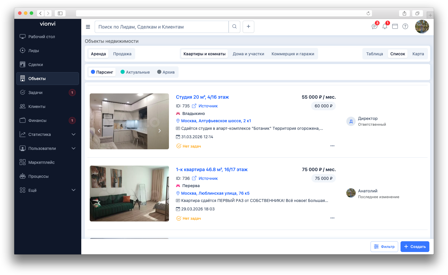 Интеграция работает круглосуточно, данные объектов со всех сайтов недвижимости обновляются каждый час